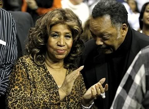 The million dollar Grammy question is "Will Aretha appear?" Well if she doesn't, we caught a glimpse of her last night at the Detroit Pistons home game and The Queen looks fabulous. See the pic inside plus get the deets of LeBron James confronting a heckler at the Pistons/Heat game and see the celebs who watched the Lakers take on the Knicks.